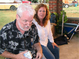 Producer and director Alan Barber with co-producer Laura Toups at the Tokio Bar in Tokio, Texas during follow-up interviews of the Aquilla 2000 football team in the summer of 2005. |