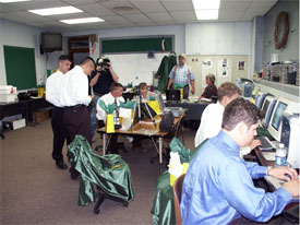Matt Cox of the Aquilla 2000 football team being interviewed by cinematographer Tom Chamberlain in the new Aquilla School library. |