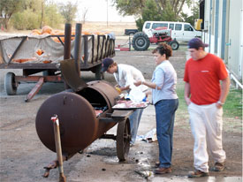 Cooking burgers for the Fall Festival at Three Way School in October 2001. Three Way School closed forever at the end of the 2001-2002 school year. |