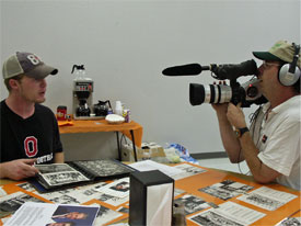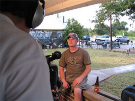 Colter Snipes on the hot seat at the Tokio Bar interview in the summer of 2005. Cinematographer Tom Chamberlain adjusts the camera settings. |