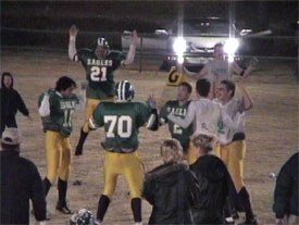Parents and the Three Way Eagles on the field after their last football game in the winter of 2001. Three Way school closed in May 2002 after serving the South Plains cotton farming region since 1945. |